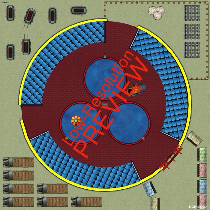 Step right up to the big top! The Circus | Map Pack brings the wonder, color, and chaos of a classic three-ring circus to your tabletop adventures. Beneath the striped tent, performers dazzle and secrets simmer—whether your players are thrill-seekers, investigators, or fugitives hiding among the clowns.