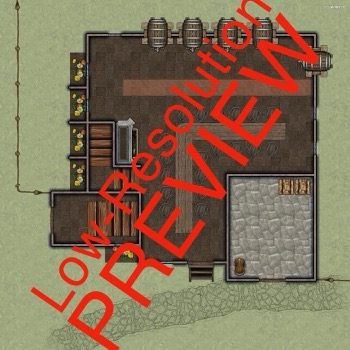 Halfling Tavern is part of our Fantasy Map Collection, featuring a detailed map of a cozy, warm tavern built by halflings and tailored to their unique charm. Frequented by halflings and known for its HUGE kitchen, this delightful establishment is perfect for hearty meals, friendly gatherings, and all the comforts of home.