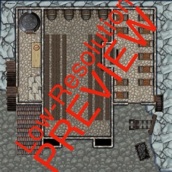 Mountain Dwarf Tavern is part of our Fantasy Map Collection, featuring a beer hall seamlessly integrated with a working mine. This robust establishment is the perfect gathering place for hearty mountain dwarves, where they can enjoy good ale, swap tales of their mining exploits, and unwind after a long day’s work. Ideal for adding a rugged, dwarven charm to your adventure setting.
